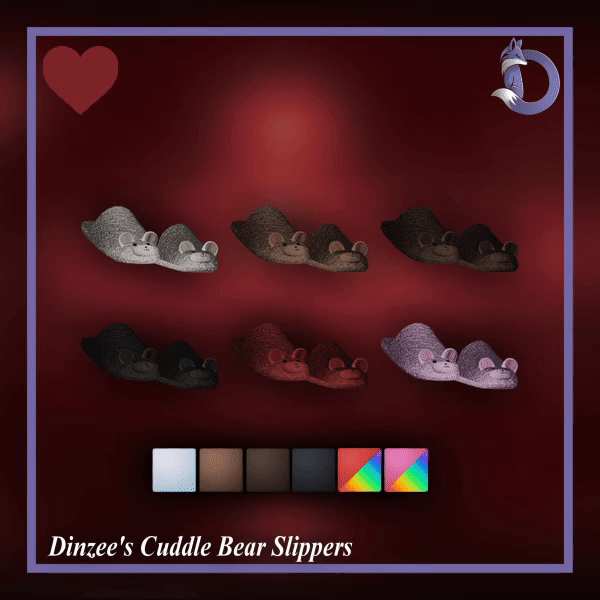 dinzee, vrchat, vrchat accessory, slippers, cozy footwear, bear themed, cuddle bear, cute, soft aesthetic, comfy, cozy outfit, valentines day, valentine accessory, casual wear, fashion accessory